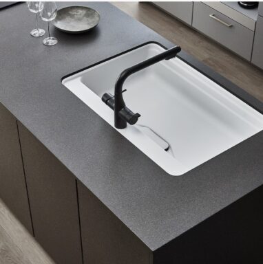 ②ハイブリッドクォーツシンク | 水廻りの作業を楽にするためのアイディアがや技術が詰め込まれている。3色展開。 |